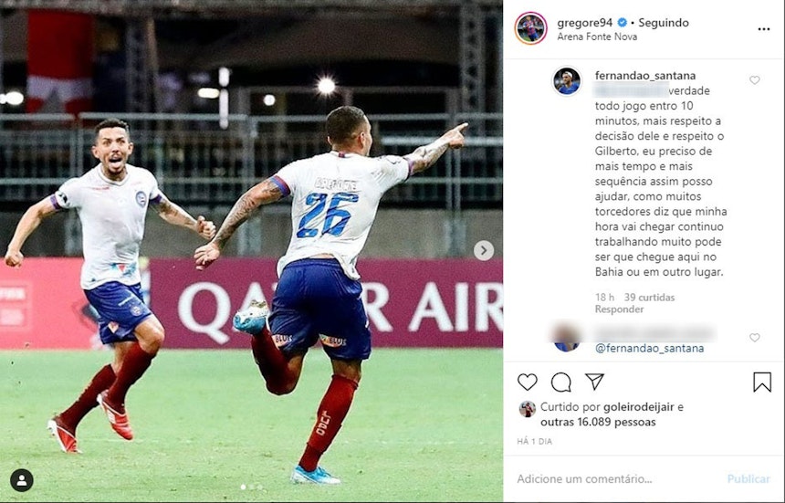 Outo torcedor que provavelmente assistiu o jogo contra o Nacional, e viu a participação do nosso atacante no final da partida também comentou: "que pique foi aquele ontem? Seu esforço vai ser recompensado". Fernandão falou também que precisa de mais tempo, mais oportunidades para poder ajudar o Bahia.