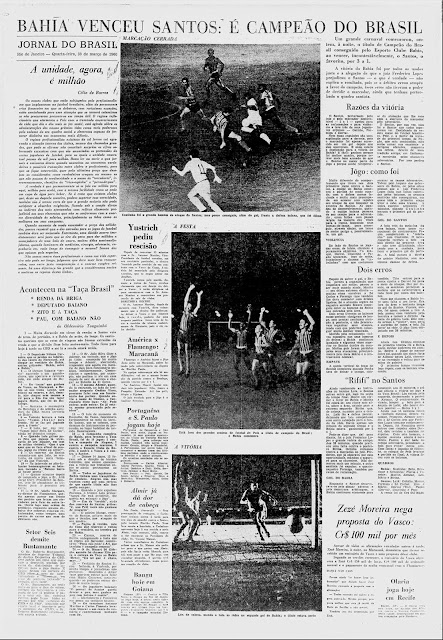 O Santos viajou e voltou todo esfacelado e com Pelé contundido, enquanto o Bahia aqui ficou se preparando para esse único jogo. O resultado não poderia ter sido outro, e assim o Esporte Clube Bahia (clube que Nasceu Para Vencer) sagrou-se o 1º CAMPEÃO DO BRASIL, graças em grande parte a "habilidade" e a "astúcia" de seu presidente que já naquela época era uma raposa.